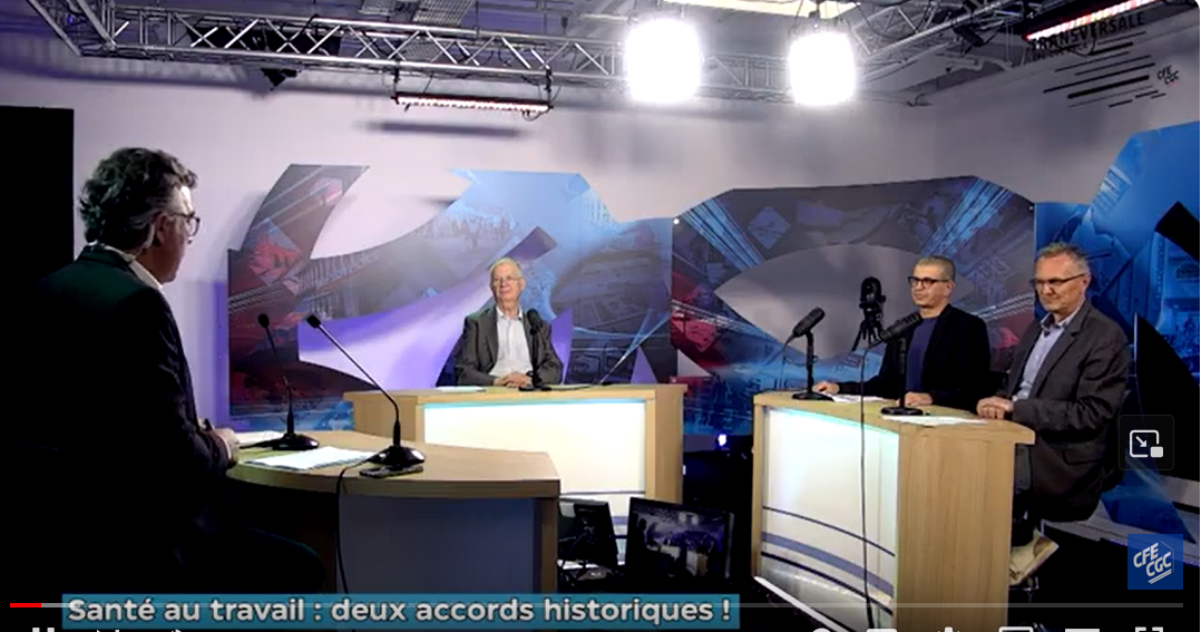 Laurent LAUBRY – Vice-Président de la CRAT-MP à la CARSAT Sud-Est et Vice-Président de la CFE-CGC PACA, Christian EXPERT – Médecin du Travail et Expert Confédéral CFE-CGC Santé au Travail, Sami JAAFAR – Ingénieur Prévention à l’association de Prévention et de Santé au Travail du BTP du 06. Interviewés sur le plateau TV de La Provence à Marseille, par le journaliste Arnaud ARDOIN, la CFE-CGC PACA aborde un sujet au combien important pour les salariés : la santé au travail !